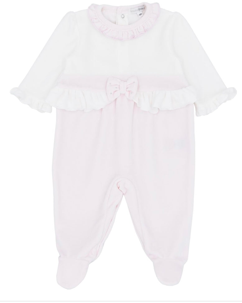 All in one pink/ Ivory layered frill sleepsuit with bow